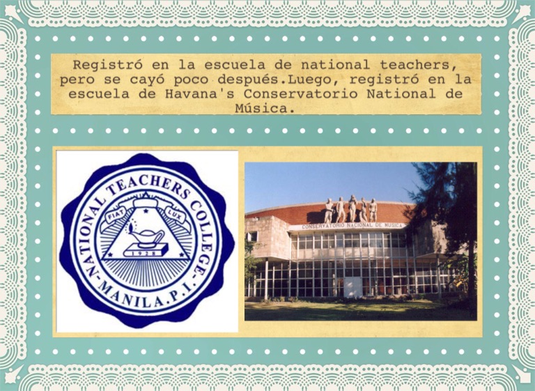 Registró en la escuela de national teachers, pero se cayó poco después.Luego, registró en la escuela de Havana's Conservatorio National de Música.