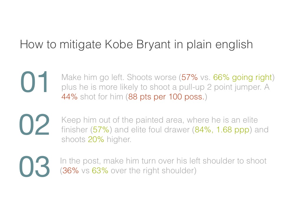 In the post, make him turn over his left shoulder to shoot (36% vs 63% over the right shoulder)