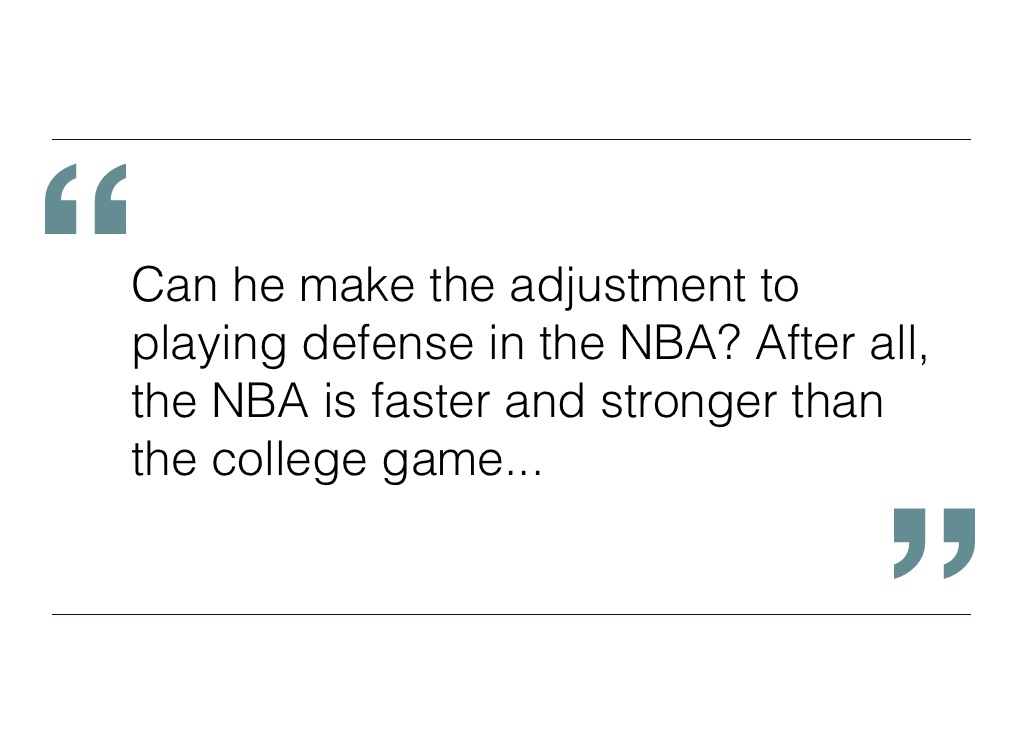 Can he make the adjustment to playing defense in the NBA? After all, the NBA is faster and stronger than the college game...