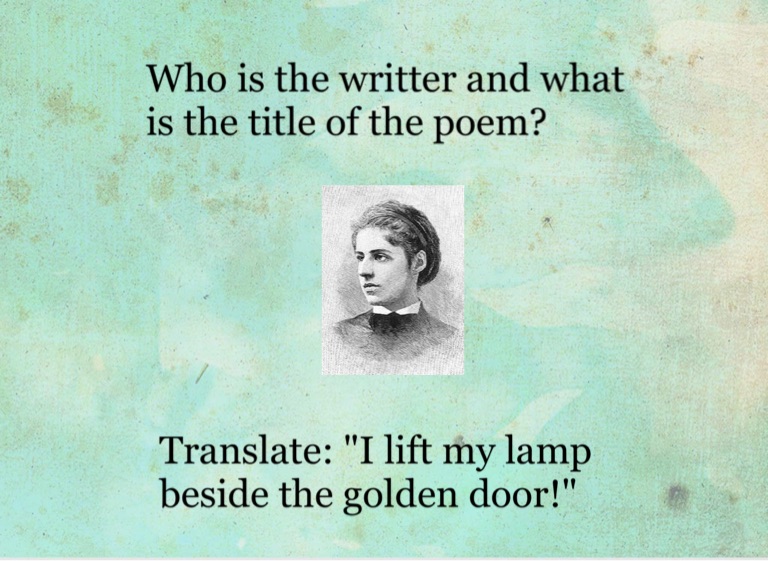Translate: "I lift my lamp beside the golden door!"