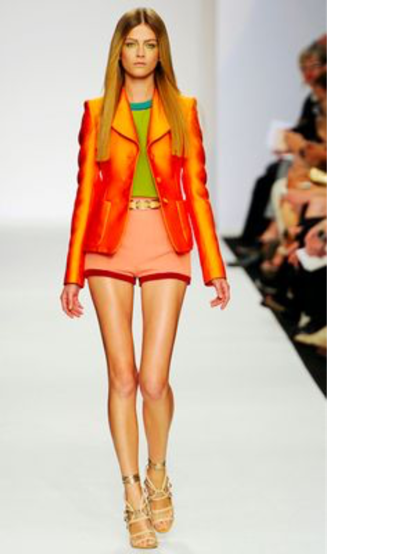 The green is the split complementary from the red and the lighter color of orange.
