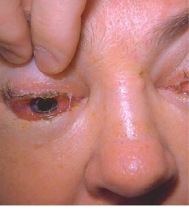 One symptom is dry red itchy eyes