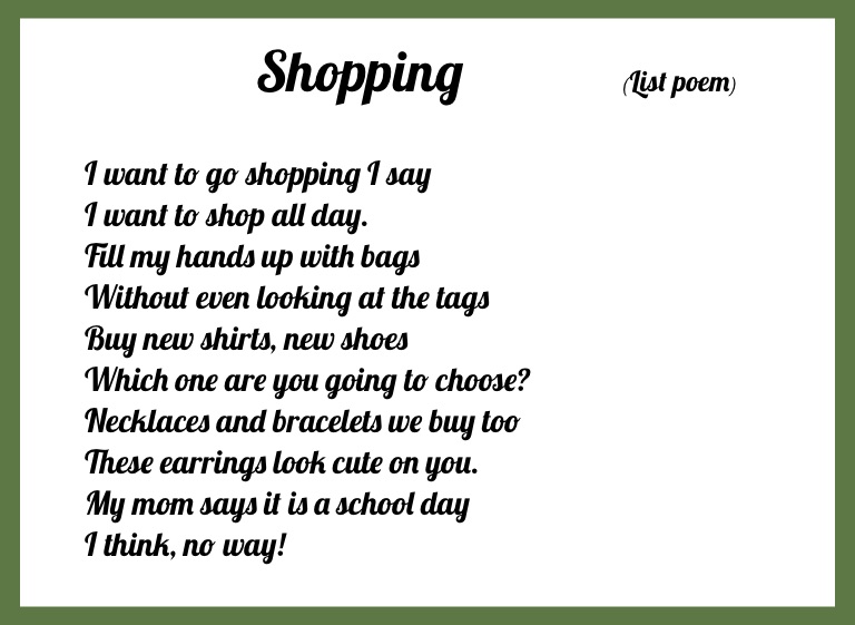 Shopping (List poem)