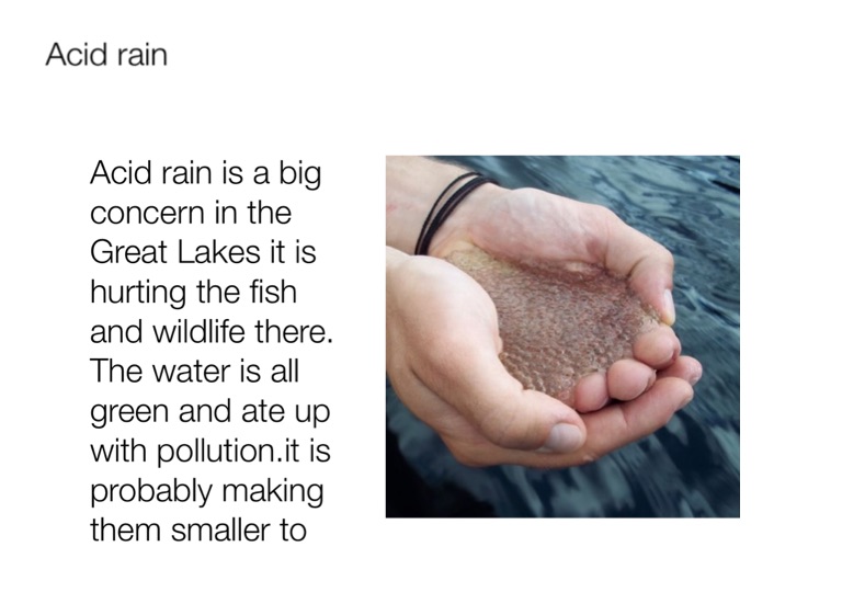 Acid rain is a big concern in the Great Lakes it is hurting the fish and wildlife there. The water is all green and ate up with pollution.it is probably making them smaller to