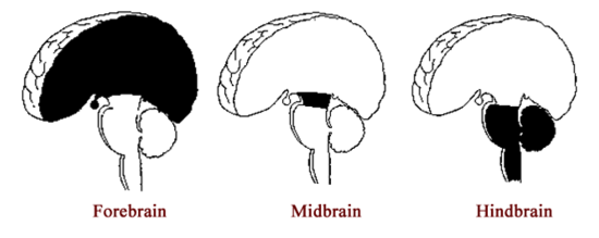 Mid-brain: includes the reticular formation, which involves motor functions.
