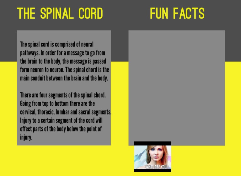 The spinal cord is comprised of neural pathways. In order for a message to go from the brain to the body, the message is passed form neuron to neuron. The spinal chord is the main conduit between the brain and the body.