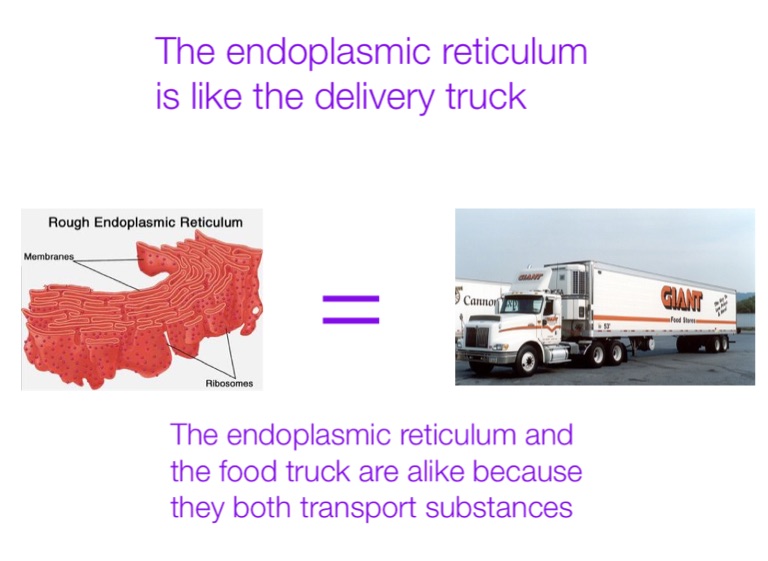 The endoplasmic reticulum and the food truck are alike because they both transport substances