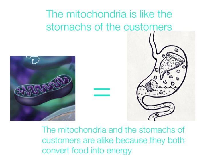 The mitochondria and the stomachs of customers are alike because they both convert food into energy