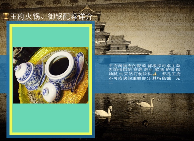 王府所拥有的配菜 都根据每桌主菜系酌情搭配 营养 养生 解酒 护胃 解油腻 纯天然打制饮料🍶 都是王府不可或缺的重要部分 其特色独一无二