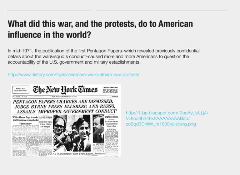 In mid-1971, the publication of the first Pentagon Papers–which revealed previously confidential details about the war’s conduct–caused more and more Americans to question the accountability of the U.S. government and military establishments.