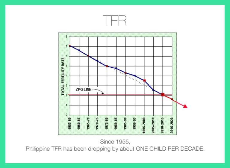 Philippine TFR has been dropping by about ONE CHILD PER DECADE.