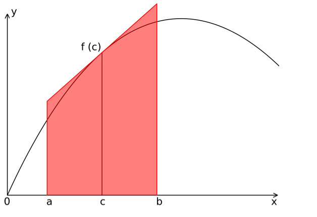 Man legt also eine Tangente am mittleren Punkt C an und berechnet den darunter liegenden Flächeninhalt