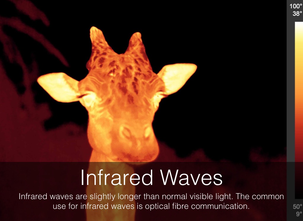Infrared waves are slightly longer than normal visible light. The common use for infrared waves is optical fibre communication.