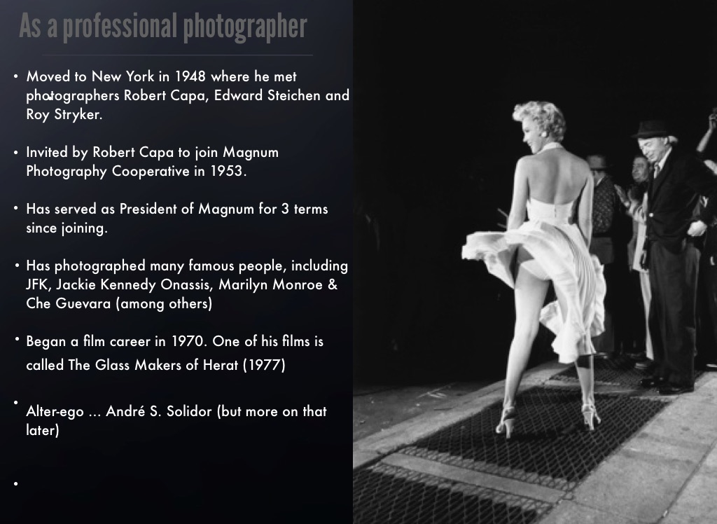 Moved to New York in 1948 where he met photographers Robert Capa, Edward Steichen and Roy Stryker.