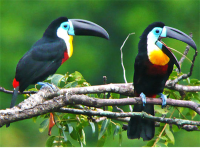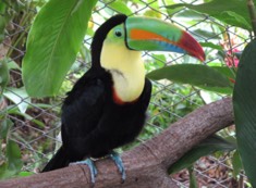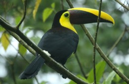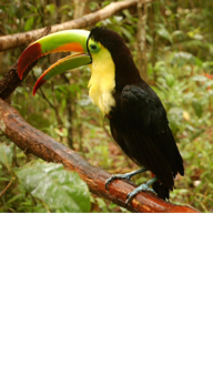 To help it survive a toucan has a flying trick that helps it escape from its predators by diving and swooping up a few times this bird easily looses the predator. It also has a huge beak that helps this heavy birdie get its food. One more thing is some types of toucans use camouflage to hide from predators.