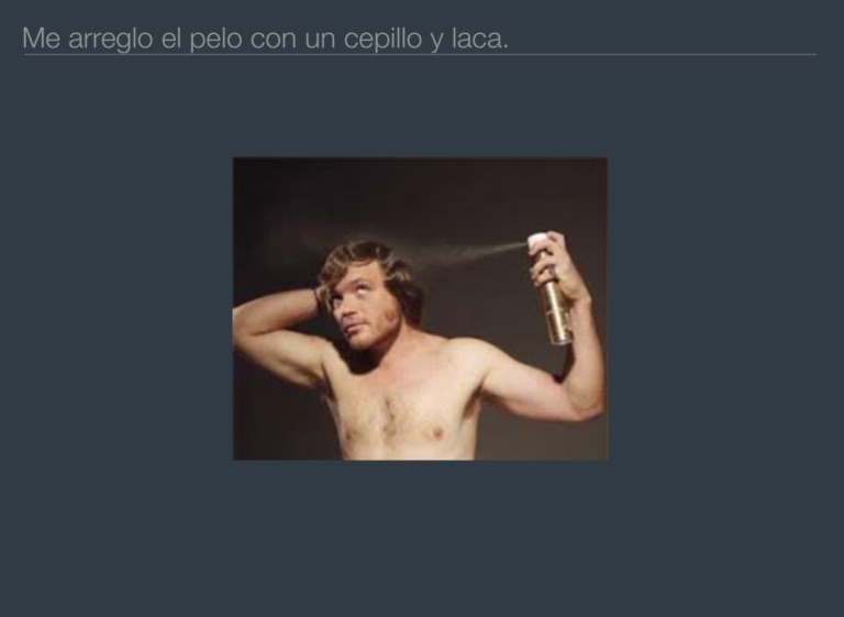 Me arreglo el pelo con un cepillo y laca.