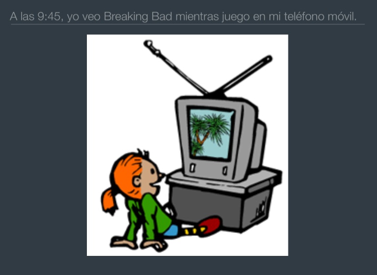 A las 9:45, yo veo Breaking Bad mientras juego en mi teléfono móvil.