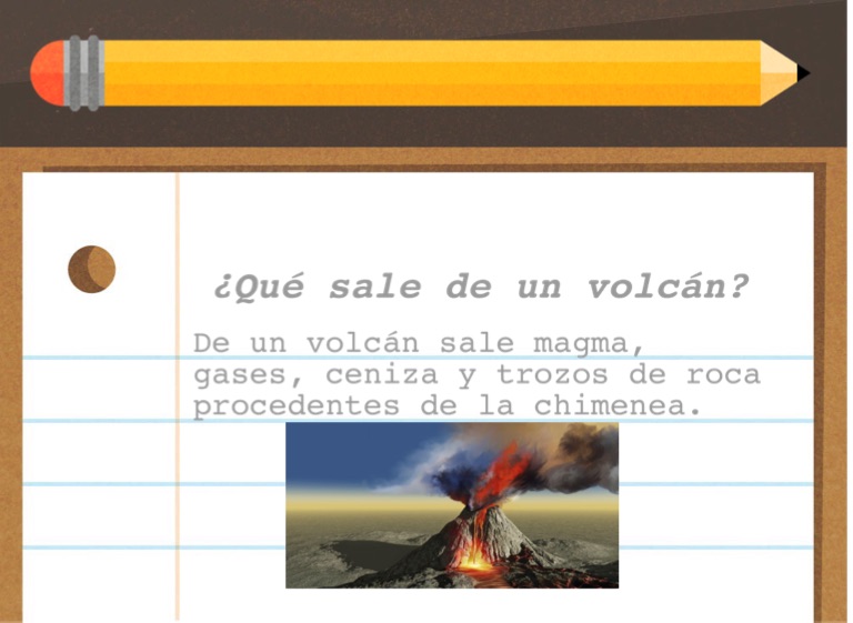 De un volcán sale magma, gases, ceniza y trozos de roca procedentes de la chimenea.