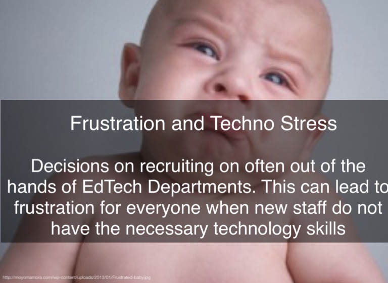 Decisions on recruiting on often out of the hands of EdTech Departments. This can lead to frustration for everyone when new staff do not have the necessary technology skills