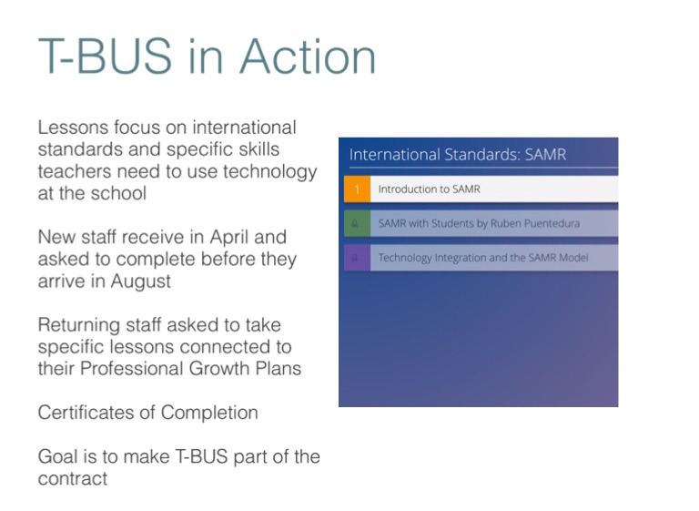 Lessons focus on international standards and specific skills teachers need to use technology at the school