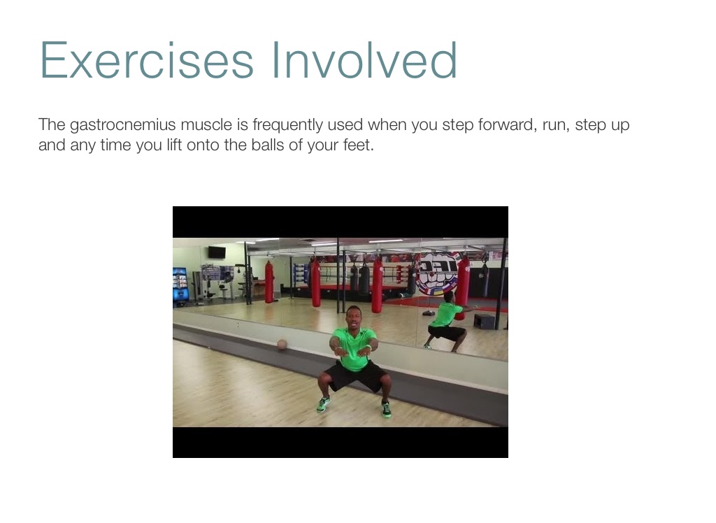 The gastrocnemius muscle is frequently used when you step forward, run, step up and any time you lift onto the balls of your feet.