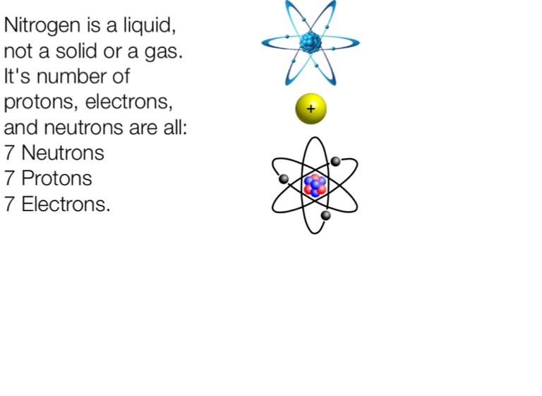 Nitrogen is a liquid, not a solid or a gas. It's number of protons, electrons, and neutrons are all: