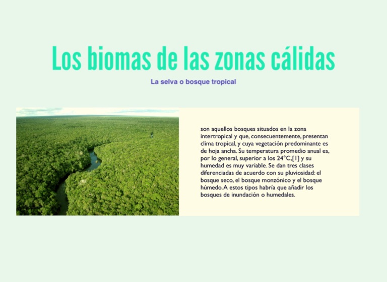son aquellos bosques situados en la zona intertropical y que, consecuentemente, presentan clima tropical, y cuya vegetación predominante es de hoja ancha. Su temperatura promedio anual es, por lo general, superior a los 24°C,[1] y su humedad es muy variable. Se dan tres clases diferenciadas de acuerdo con su pluviosidad: el bosque seco, el bosque monzónico y el bosque húmedo. A estos tipos habría que añadir los bosques de inundación o humedales.