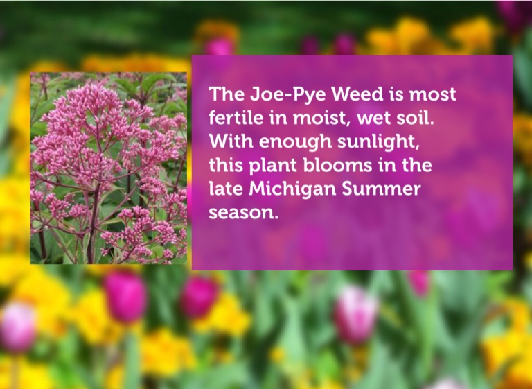 The Joe-Pye Weed is most fertile in moist, wet soil. With enough sunlight, this plant blooms in the late Michigan Summer season.