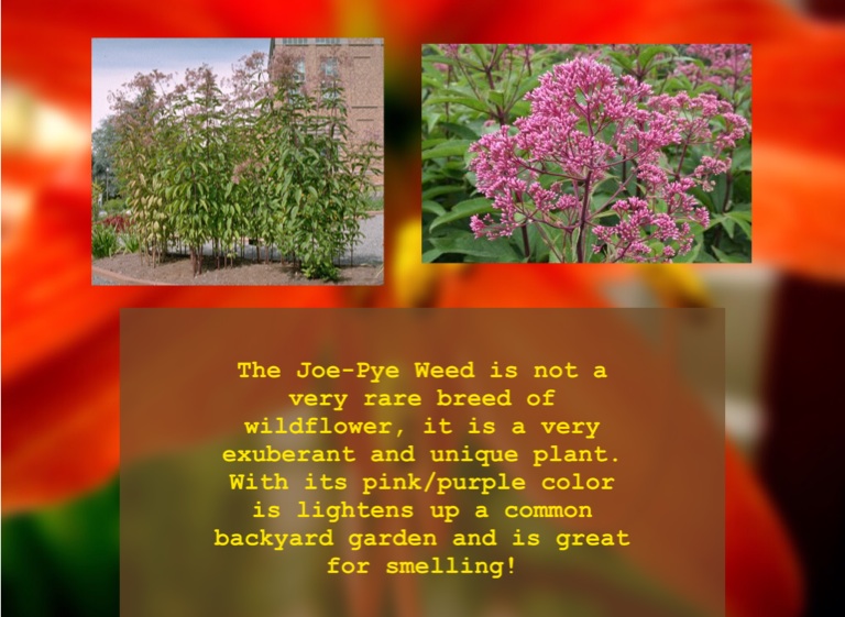 The Joe-Pye Weed is not a very rare breed of wildflower, it is a very exuberant and unique plant. With its pink/purple color is lightens up a common backyard garden and is great for smelling!