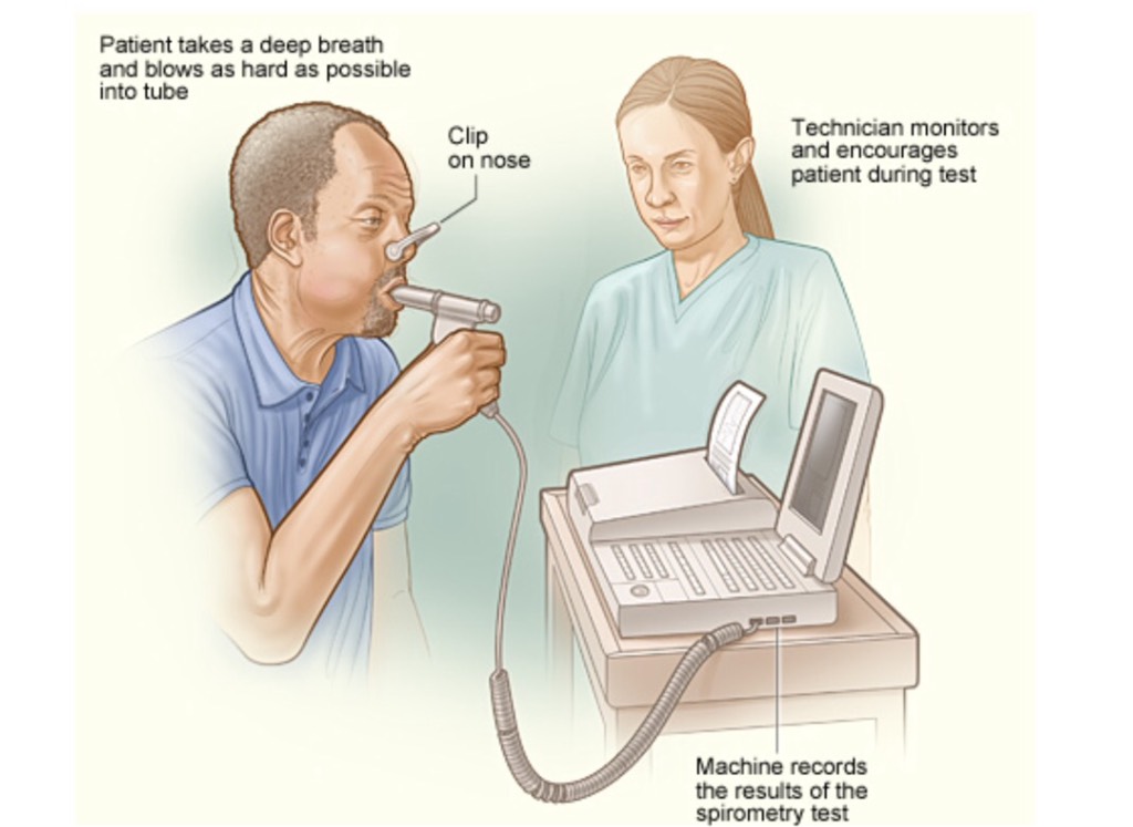 If you are at risk for COPD or have symptoms of COPD, you should be tested through spirometry. A common test that measures how much air a person can inhale and exhale and speed of exhalation. It is often used to diagnose lung disease Spirometry is a simple test of how well your lungs work.