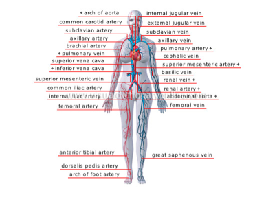 High pressure blood vessels that carry oxygenated blood away from the heart to all other tissues and organs.