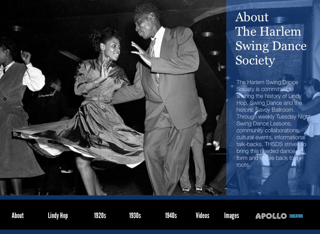 The Harlem Swing Dance Society is committed to sharing the history of Lindy Hop, Swing Dance and the historic Savoy Ballroom. Through weekly Tuesday Night Swing Dance Lessons, community collaborations, cultural events, informational talk-backs, THSDS strives to bring this needed dance art form and staple back to its roots.