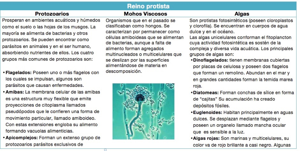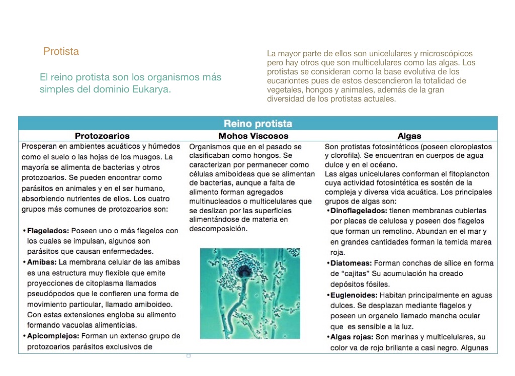 La mayor parte de ellos son unicelulares y microscópicos pero hay otros que son multicelulares como las algas. Los protistas se consideran como la base evolutiva de los eucariontes pues de estos descendieron la totalidad de vegetales, hongos y animales, además de la gran diversidad de los protistas actuales.