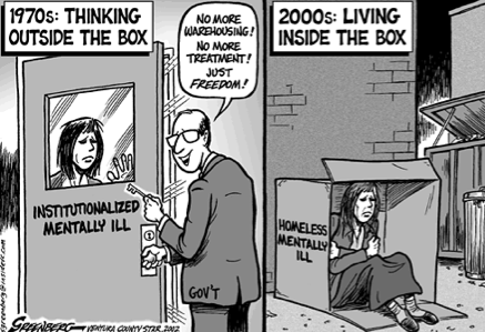 The reform did not help them when it freed the mentally ill patients because some of them were homeless and others couldn't hold jobs and other things.