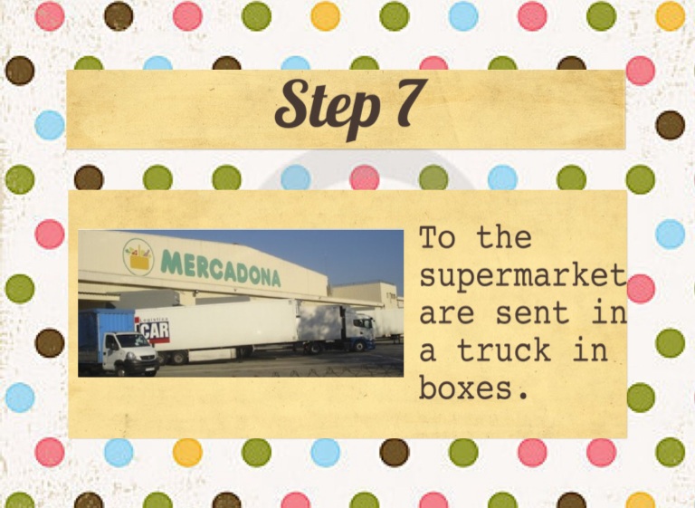 To the supermarket are sent in a truck in boxes.