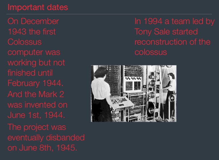 On December 1943 the first Colossus computer was working but not finished until February 1944.