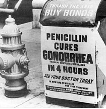 Penicillin in WWII was used mostly for the soldiers in the war who had been shot or got gangrene.