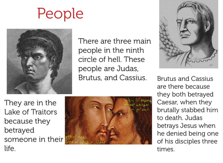 There are three main people in the ninth circle of hell. These people are Judas, Brutus, and Cassius.
