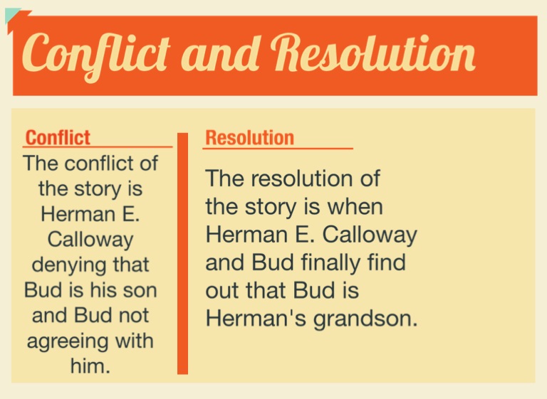 The resolution of the story is when Herman E. Calloway and Bud finally find out that Bud is Herman's grandson.