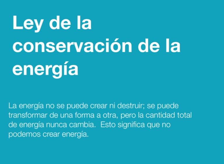 La energía no se puede crear ni destruir; se puede transformar de una forma a otra, pero la cantidad total de energía nunca cambia. Esto significa que no podemos crear energía.