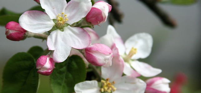 Each April and May, crabapple trees burst out in delicate white and pink blossoms. The clustered flowers not only add color to otherwise green apple orchards, they also give off a valuable honeysuckle scent. The sweet fragrance attracts bees to orchards where they do the important job of pollinating crabapple and other apple trees. Apple growers often plant crabapple trees amongst their other apple varieties just for this purpose. After apple blossoms are pollinated, fruits begin to grow.