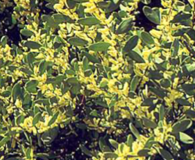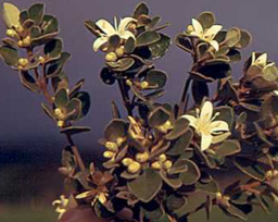 Is a common shrub with narrow stalked leaves on long arching branches which bind the sand.