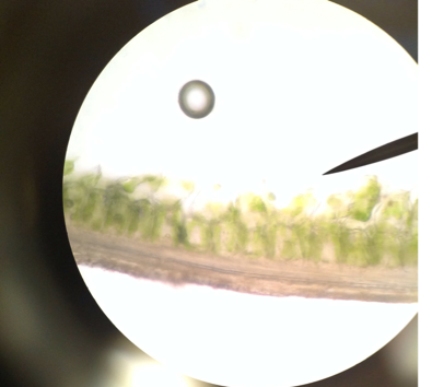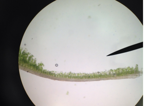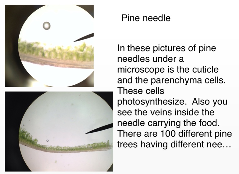 In these pictures of pine needles under a microscope is the cuticle and the parenchyma cells. These cells photosynthesize. Also you see the veins inside the needle carrying the food.