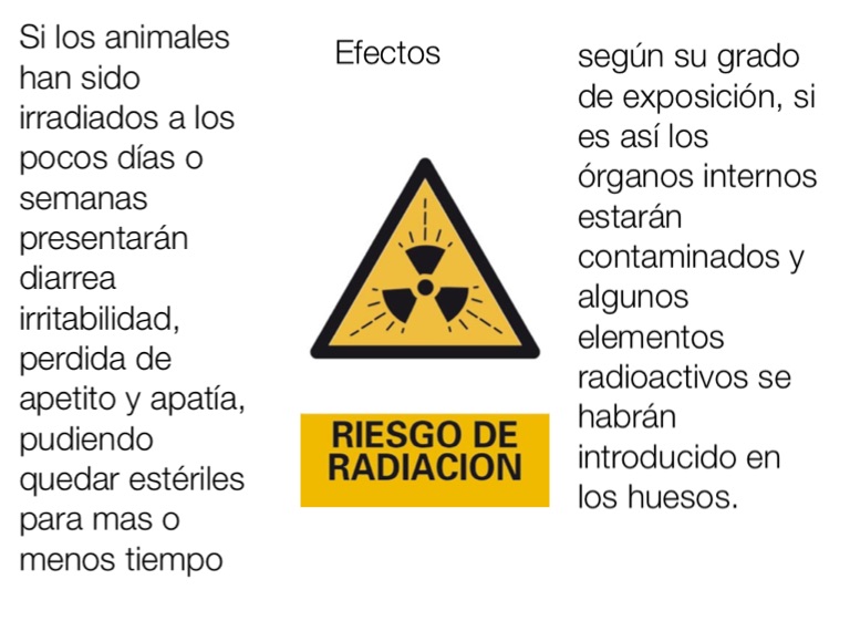 Si los animales han sido irradiados a los pocos días o semanas presentarán diarrea irritabilidad, perdida de apetito y apatía, pudiendo quedar estériles para mas o menos tiempo