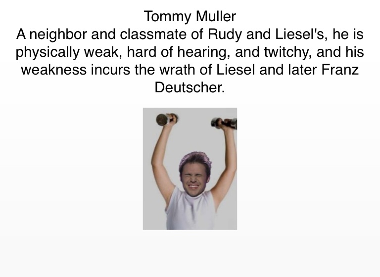 A neighbor and classmate of Rudy and Liesel's, he is physically weak, hard of hearing, and twitchy, and his weakness incurs the wrath of Liesel and later Franz Deutscher.