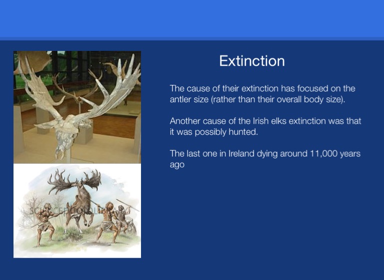 Another cause of the Irish elks extinction was that it was possibly hunted.
