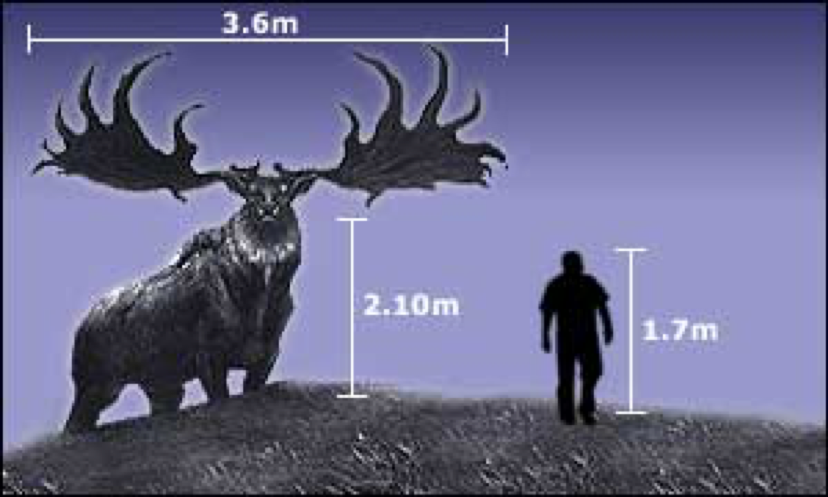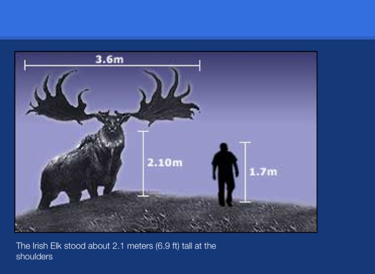 The Irish Elk stood about 2.1 meters (6.9 ft) tall at the shoulders