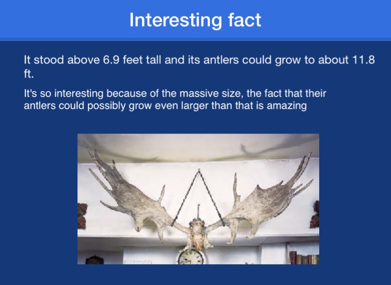 It stood above 6.9 feet tall and its antlers could grow to about 11.8 ft.