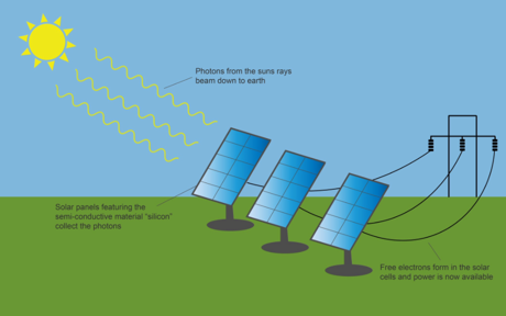 Solar energy can be obtained using three methods: solar panels, solar water heaters, and solar furnaces. Solar panels or cells convert the sun directly into electricity. Solar water heaters are glass containers located on a roof that heat water and channel it through pipes. Solar furnaces use an array mirrors to concentrate sunlight and produce very high temperatures.