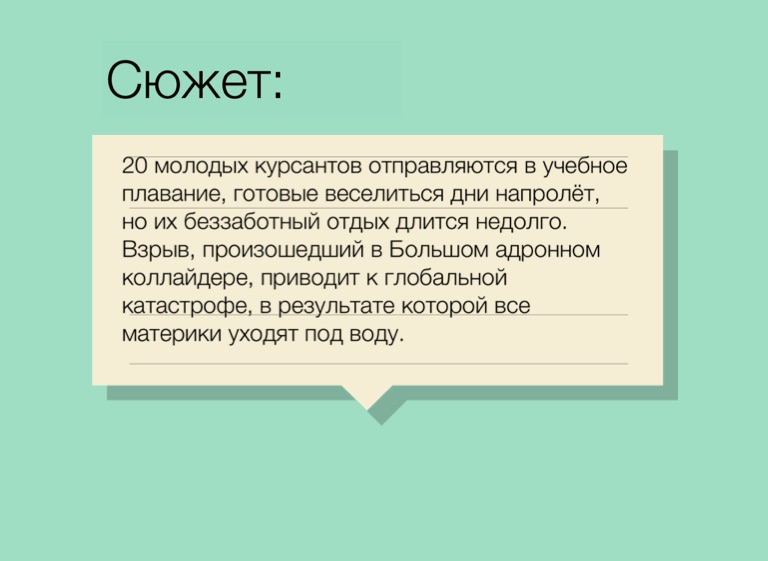 20 молодых курсантов отправляются в учебное плавание, готовые веселиться дни напролёт, но их беззаботный отдых длится недолго. Взрыв, произошедший в Большом адронном коллайдере, приводит к глобальной катастрофе, в результате которой все материки уходят под воду.